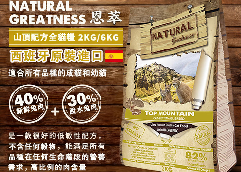 恩萃(Natural Greatness)誕生於對寵物營養的極致追求,品牌深耕寵物食品領域多年,始終堅持「以天然食材為核心,以科學配方為支撐」的理念。作為西班牙原裝進口品牌,恩萃從原料篩選到生產製造,都遵循嚴格的歐洲品控標準,拒絕人工添加劑、誘食劑與多餘填充劑,只為將最接近貓咪野生飲食的天然營養,送到每一只毛孩口中。