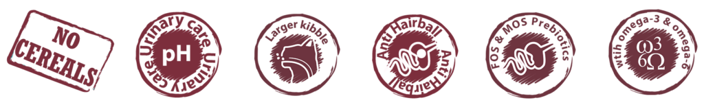 此外,配方中特別添加菊粉(低聚果糖)、甘露寡糖(MOS)等益生元,搭配酵母成分調節腸道菌群平衡;麥芽萃取物幫助預防毛球形成,三文魚油帶來豐富的歐米伽3、6脂肪酸,不僅呵護腸胃健康,更能優化尿液酸鹼值、呵護毛髮亮澤與關節健康,全方位守護貓咪內部機能。