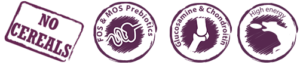 成分表:脫水鴨肉、脫水火雞肉、脫水雞肉、馬鈴薯、家禽油 (12%)、新鮮兔肉 (10%)、馬鈴薯蛋白、酵母、甜菜漿、水解雞肝 (4%)、亞麻籽、礦物質、鮭魚油 (0.25%)、菊糖(FOS)、甘露寡糖(MOS)、絲蘭萃取物、葡萄糖胺 650 mg/kg、軟骨素 150 mg/kg。