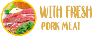 脫水豬肉 36%、新鮮豬肉 15%、木薯、豌豆、豬脂肪 8.5%、蘋果渣、三文魚油 2%、礦物質、水解豬肝 1.75%、水解蔬菜、豌豆蛋白、啤酒酵母、角豆、水果(梨、蘋果、藍莓)3000mg/kg、蔬菜(南瓜、胡蘿蔔、菠菜、西蘭花、生薑)3000mg/kg、迷迭香、麥芽提取物 500mg/kg